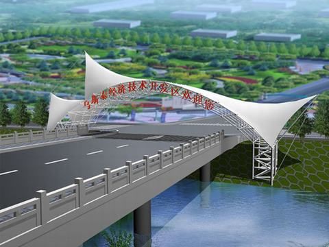 高速公路膜結構是由多種薄膜材料及加強構件通過一定方式使其內部產生一定的預張應力以形成某種空間形狀,作為覆蓋結構,并能承受一定的外荷載作用的一種空間結構形式。